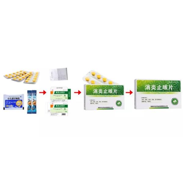 This model is suitable for automatic feeding and packing of various types and specifications of items (it can also be bottled or packed with aluminum-plastic panels). The feeding mechanism is easy to adjust, and the number of editions to be boxed can be arbitrarily by touch screen operation. The whole process is completed automatically such as online material transportation and testing, manual folding (1 to 4 folding and transmission), material into the box, stamping batch number, paper tongue sealing at both ends of the carton (also applicable to hot melt glue), missing material removal and finished product output, etc.